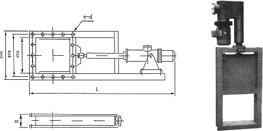 該閘閥主要由框架、閘板、電液裝置等零件組成。工作時,活塞桿受液壓力作用帶動閘板作水平方向的往復(fù)運(yùn)動,達(dá)到閘門的啟閉目的。